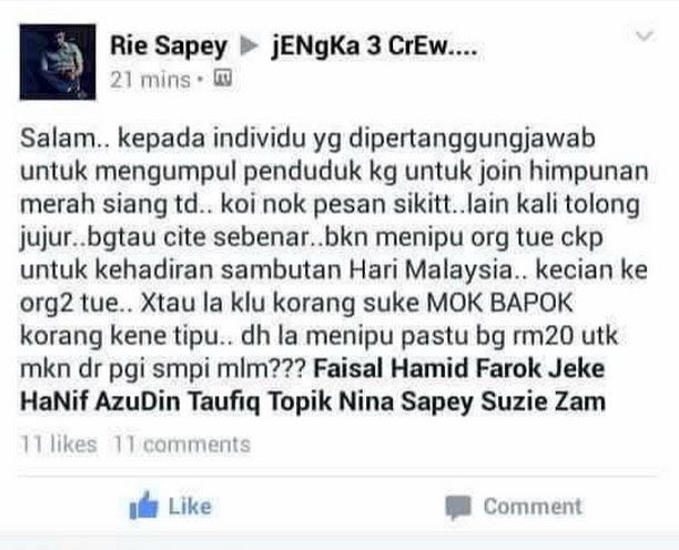 Berikut adalah beberapa kenyataan dan komen di laman Facebook dan Twitter yang dipetik sebagai mendakwa ada segelintir pihak ditipu bagi tujuan berkenaan. -